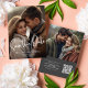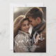 This design features a save the date photo card perfect for weddings, with a simple photo template, with an elegant, modern minimalist, classy, simple style, with a scannable QR code, and a modern, calligraphy script style.
