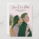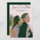 A Save The Date Photo Wedding Announcement Card designed with your favourite couples photo and your personalised details. The front text includes: Save The Date, The Bride and Groom's First Names, and Wedding Date. The reverse side text includes: The Wedding Location and Formal Invitation To Follow, on a dark background with white hearts. To personalise, simply insert your image into our easy template. Click FILL to cover the front. Next insert your text details, replacing the sample. Note: Font and Background Colours can be changed to compliment your image using our easy Colour Picker Tool.