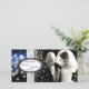 Copyright 2012 Pam's Designs. Save the date for your wedding with this dark blue, silver, black, and white bright lights photo card. Customise this design with your favourite photo. This design features bright globes of light with a transparent vertical ribbon and a stunning oval frame adorned with elegant swirls and leaves.