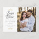 Save the Date Photo Wedding Gold Hearts Script Announcement Postcard