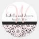 Save the Date Wedding Sticker Design by Elke Clarke©2010. More designs available at WhiteWhimsicalWeddings.com and WhiteWhimsicalWeddings.com. Customise with your font choice, names and monogram letter. Use these classic stickers on the back of all your correspondence envelopes for your wedding invitations, bridal showers and thank you cards as well as at the wedding reception on the wedding favours and wedding party gifts.