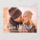 Stylishly modern save the date postcards with chic white script on the front. Easily add your custom photo and text to the front, along with your custom save the date details on the back.