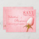 Beautiful single pink rose on pinky modern rustic effect paper save the date wedding informal invitation. Edit this invitation with your words (suitable for longer names). Simple yet modern and romantic invite. Design and photography by Sarah Trett.