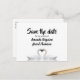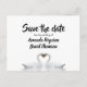 A simple and elegant save the date card with love as the theme. Two beautiful swans bending their heads toghether and forming a heart shape. White background. Templates for names and wedding details. Black letters.