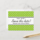 Save the date postcards | apple green polkadots. Modern polka dot pattern design for wedding couples. Elegant script text.