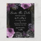 Gothic Style Purple Gold Black Floral Wedding. Faux gold foil leaves. Script font highlights with easy to read serif name font. Easy to adjust for your own wedding needs. Personalised wedding supplies