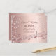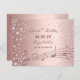 On front: Rose gold faux metallic looking background decorated with faux diamond sprinkle and rose gold music notes . Templates for a name and date. Dark rose gold coloured letters. The name and the text: Save the Date are written with a modern hand lettered style script.