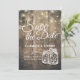 Save The Date Wedding Invitation Card Templates - Save The Date Lettering Script and Vintage Mason Jar String Lights on Rustic Wood Background.