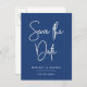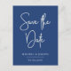 save the date script on classic blue announcement postcard