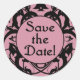 Beautiful Save the Date stickers for your envelopes. In dusty pink and bold black. Circular design with black damask swirl motif. Make your envelopes special with these stickers!