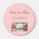 A Save the Date magnet with beautiful vintage Victorian art of a pair of elegant white swans floating on a lake framed by red roses and pink forget-me-not flowers. Click Customise It to change fonts add text and more.