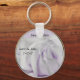 A beautiful spiral rose tinged with pale lavender purple violet makes an enchanting wedding flower announcement. Give a save the date wedding keychain as a stunning fun reminder and gift. Design includes a pale lavendar background and a silver and gold ring around the image.
