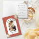Create a stunning first impression with this modern Boho Save the Date invitation folded card, featuring elegant cream flowers and a romantic terracotta background and sage green bouquet design. Includes a customisable photo layout to showcase your favourite picture as a couple. Ideal for couples looking for a stylish and easy-to-edit Save the Date invitation with floral aesthetics and earthy colours.