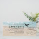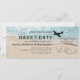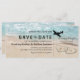 Immerse in the romance of sun-drenched sands and soothing ocean waves with our unique beach destination Save-the-date boarding pass. Crafted meticulously with a tropical ocean island backdrop, the pass features a vintage sandy beach set with two loving hearts at the shoreline, elegantly inscribed with your initials. The wedding text template adds a personal touch to your big day, inviting guests to embark on an unforgettable journey of love and celebration.