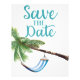 Save The Date Tropical Paradise - Featuring a vintage striped hammock hung on a large palm tree wedding/Engagement or general celebration poster art.
