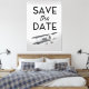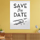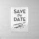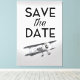 save the date wedding engagement invitation in a classic black and white poster featuring a biplane.