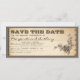 save the date invitation with vintage aged ticket typographic design