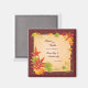 This square save the date wedding announcement magnet has an autumn fall foliage design. On the border, there are multi coloured leaves and swirls. In the middle, you can easily customise your wedding date and the names of the bride and groom.