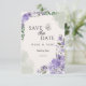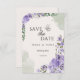Elegant Save the Date wedding card featuring a romantic bride and groom illustration.
