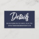 Keep your guests in the loop regarding all your wedding-related details with these pretty, wedding favor insert cards. These pretty cards reflect an elegant, casual style. Elegant text overlays were designed using a modern, bold, casual script font; one side reads "Save the Date" and the other, simply says "Details". Use the template fields to customize these enclosure cards with your personal information. Printed using "business card technology" the handy size will be easy to keep on hand. Mail them with your traditional mailings, and keep a few around to share with those who need an extra or two! The background is covered in a sophisticated navy and this editable color can be changed to anything from your wedding palette that you choose; all text is white. // 89 // Designed by Melody Watson for Paper Muserie.