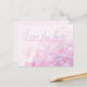 Save the date wedding hydrangea postcard in purple andpastel pink hues. Classic wedding save the date postcard. An elegant exclusive photo treated design by Sarah Trett.