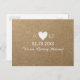 A simple wedding postcard with a rustic look (printed image of kraft texture) for Save-the-Date invitations... featuring a white graphic heart with customisable lines of text... with a touch of simplicity and elegance