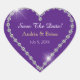 Save The Date, White Diamond Heart, Names Purple Heart Sticker