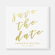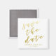 NewParkLane - Magnet, with 'Save the date' in elegant faux gold foil script typography, against a white background. Easy to customize in Zazzle with your own names, date or other text for a personalized design. All text styles, colors, and sizes can be modified to fit your needs. You can also change the background color to any color you prefer.