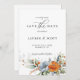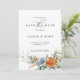This stunning Save the date features a beautiful floral motif in shades of blue and orange, creating a perfect harmony of colours that will impress your guests. This makes it an excellent choice for couples who want to add a touch of colour to their save the date and make it truly unique.