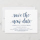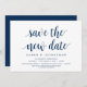 Change the date card. This is the Wedding party invitation Rescheduled (postponed / postponement) card (Save our new date), in the modern minimal simple clean design themed, Navy Blue font.