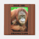 An orangutan mother and her tiny infant with the words Save the Orangutans surrounding it.