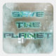 Save the planet sticker with forest inside the letters, in a factory full of smoke.