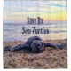 Save The Sea Turtles, cute little baby sea turtle in the sandy beach with the waves behind.