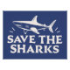 Save the sharks poster print shark lover quotes gifts. Protect the marine wildlife protection conservation rescue world ocean day blue retro vintage aesthetic room decor.