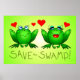 24" x 16" poster, green cartoon frogs Twitchy and Beulah with red hearts. You can get this poster in larger or smaller sizes if desired, or on different types of paper. Wetlands such as swamps, bogs, marshes and fens are vital to a healthy enviroment. A portion of proceeds from every "Save the Swamp!" product goes towards enviromental education and wetland conservation. Please visit http://www.happywishingwell.com/save-the-swamp.html for more info, and have a hoppy day!