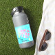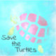 Turtle design is a watercolor pink and green with a blue watercolor background.