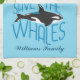 Pretty orca whale gift with a beautiful black fish on an ocean blue hand towel. I love personalised marine animal presents.