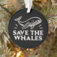 Save the whales protect marine ocean animals conservation protection theme cute whale lover activist gift Christmas tree black ornament holiday season living room home decor.