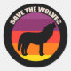 Save the Wolves. Beautiful wolf gift for an animal lover that features a wolf silhouette howling in front of a pretty retro sunset. Animal activist design for a conservationist who respects wildlife.