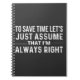 to save time lets assume im always right, to save some time, lets just assume, im always right, humour joke, sarcasm, future bank manager, retired bank manager, bank managers, i love economics, graduate, inspiration for home bank manager i m a home police officer, im an, to save time, assume, im never wrong, just assume, save time, once upon a time t