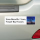 Bumper Sticker with the phrase "Save Beautiful Trees, Forget Big Houses", with a photograph of an Oak Tree silhouette during winter at sunrise.