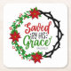 Saved by His Grace Christmas Wreath Square Paper Coaster