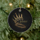 Share the wonder of Christ's miraculous birth as newborn Saviour King with this eye-catching, Christian Christmas ornament in black and gold. It's elegant minimalist design pays homage to the earthly and heavenly Kingship of Jesus over His people. Two crowns represent Christ's sacrificial death and resurrected eternal rule over those from every tribe, tongue and nation who believe--the purpose for which He was born! Included is the bible address John 18:37 which recounts Christ's declaration before Pontius Pilate of the redemptive connection between His Kingship and nativity. The backside of this lovely ornament displays the full scripture verse and allows for customisation, if desired.