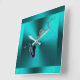 Saxophone Blowing Notes Modern Metallic Teal Square Wall Clock