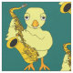 A cute yellow chick holding a saxophone is a funny music design for sax musicians, music teachers and students. Image size and background colour are customisable.