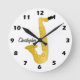 This saxophone design wall clock is a timekeeping device designed to hang on a wall, serving as both a functional tool and a decorative focal point for a room. Made from acrylic and features a pre-installed backside hanging slot for easy hanging and a non-ticking design. You can customise this wall clock with any text of your choice. Should you require any help with customising then contact us through the link on this page. Saxophone design wall clock
