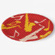Saxophones and music notes composed of horizonyal lines against a vertical lines in shades of red, orange and yellow is a unique design for sax musicians, music teachers and students in jazz, concert and marching band.