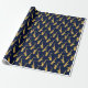 Cool wrapping paper patterned with saxophones, on a dark blue background.