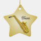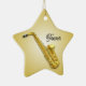 Personalised music ornament for the saxophone player. Add a name to the front (guys or girls) and any text to the template on the back of this gold coloured, star-shaped hanging ornament to use at Christmas or any time.