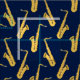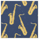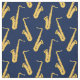 Stylish fabric patterned with cool saxophones. You can customise and change the background colour from deep blue, to whatever suits your craft project.